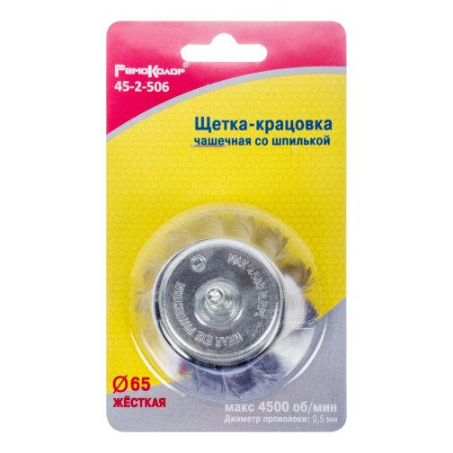Щетка-крацовка чашечная, со шпилькой, витая стальная проволока, 65мм