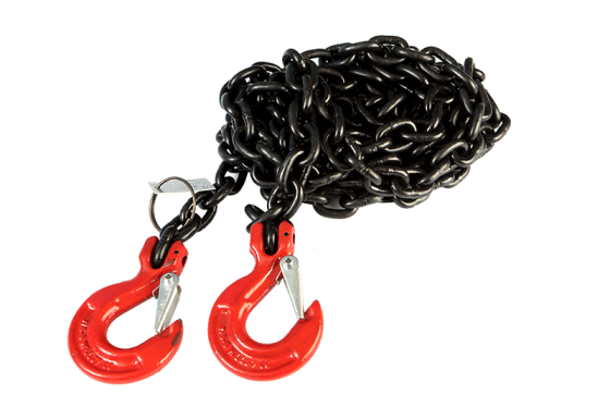 Стяжные крепежные цепи с крюками - такелажные устройства применяется для фиксации и транспортировки грузов на тралах, автомобилях, судах, железнодорожном транспорте. Применяются совместно со средствами крепления - натяжителями, рэтчетами, трещотками. Производится из легированной стали 8 или высоколегированной стали 10 класса прочности.