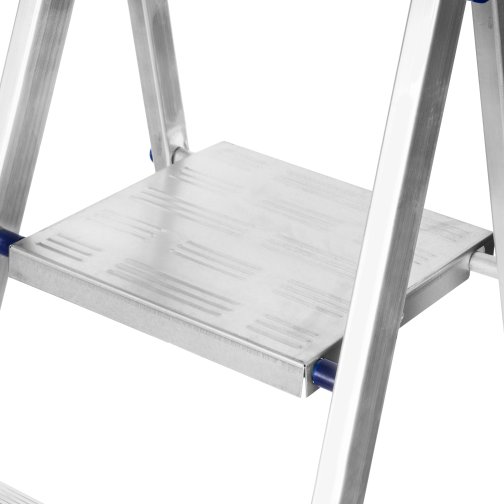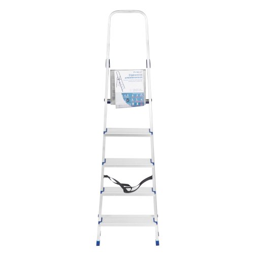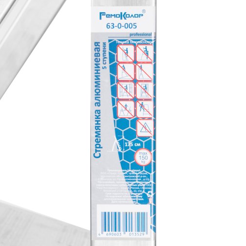 Стремянка стальная РемоКолор 5 ступеней 63-0-105 выполнена из прямоугольного профиля и окрашена синей полимерной краской. Эта модель рассчитана на высокую нагрузку, обеспечивает хорошую устойчивость как всей конструкции, так и каждой ступеньки по отдельности. Ступени выполнены из алюминия, имеют специальное рифление, что снижает вероятность скольжения во время работы. Прочный страховочный ремень предотвращает выход стремянки из рабочего положения, что обеспечивает безопасную работу на верхних ступенях. Применяется в быту и строительной области. Нагрузка до 150 кг. Вес - 5,8 кг. Высота 103/175 см.