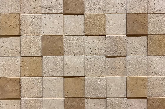 В серии фибробетоных панелей «3D мозаика» несколько вариантов расцветки – однотонные и контрастные варианты. Они отлично смотрятся на фасаде и внутри здания.
