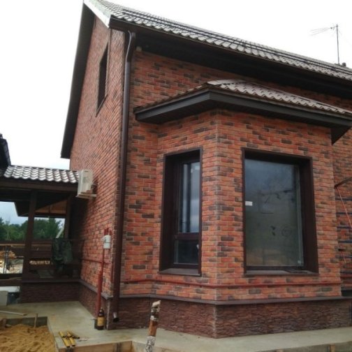 Конаковский кирпич отличается неровной фактурной поверхностью, которая придает зданию красивый и богатый внешний вид. Фасадная плитка конаковский кирпич решает те же задачи, но облегчает процесс облицовочных работ, которые проводятся с большой скоростью, в любое время года, при любых погодных условиях. Цена плитки зависит от «цветности» изделия, которое может быть одноцветным или многоцветным – цены плитки многоцветной, разумеется, выше. Плитку под конаковский кирпич делают двухрядной с перекрытием шва – такое строение обеспечивает стык внахлест, что позволяет скрывать шов, защищая здания от воздействия осадков, влияния прочих природных явлений и обеспечивая более привлекательный внешний вид.