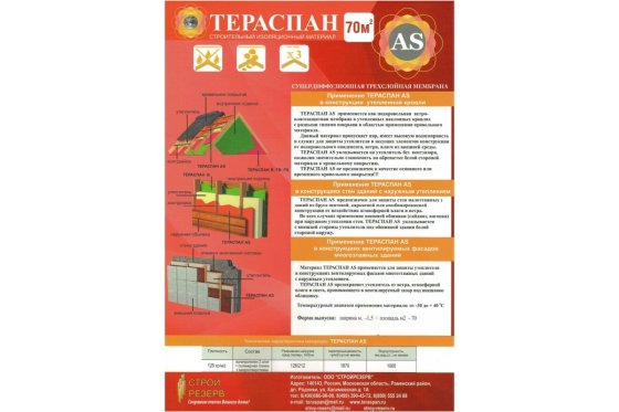 ТЕРАСПАН AS предназначен для защиты стен малоэтажных зданий из бруса, щитовой, каркасной или комбинированной конструкции от воздействия атмосферной влаги и ветра.